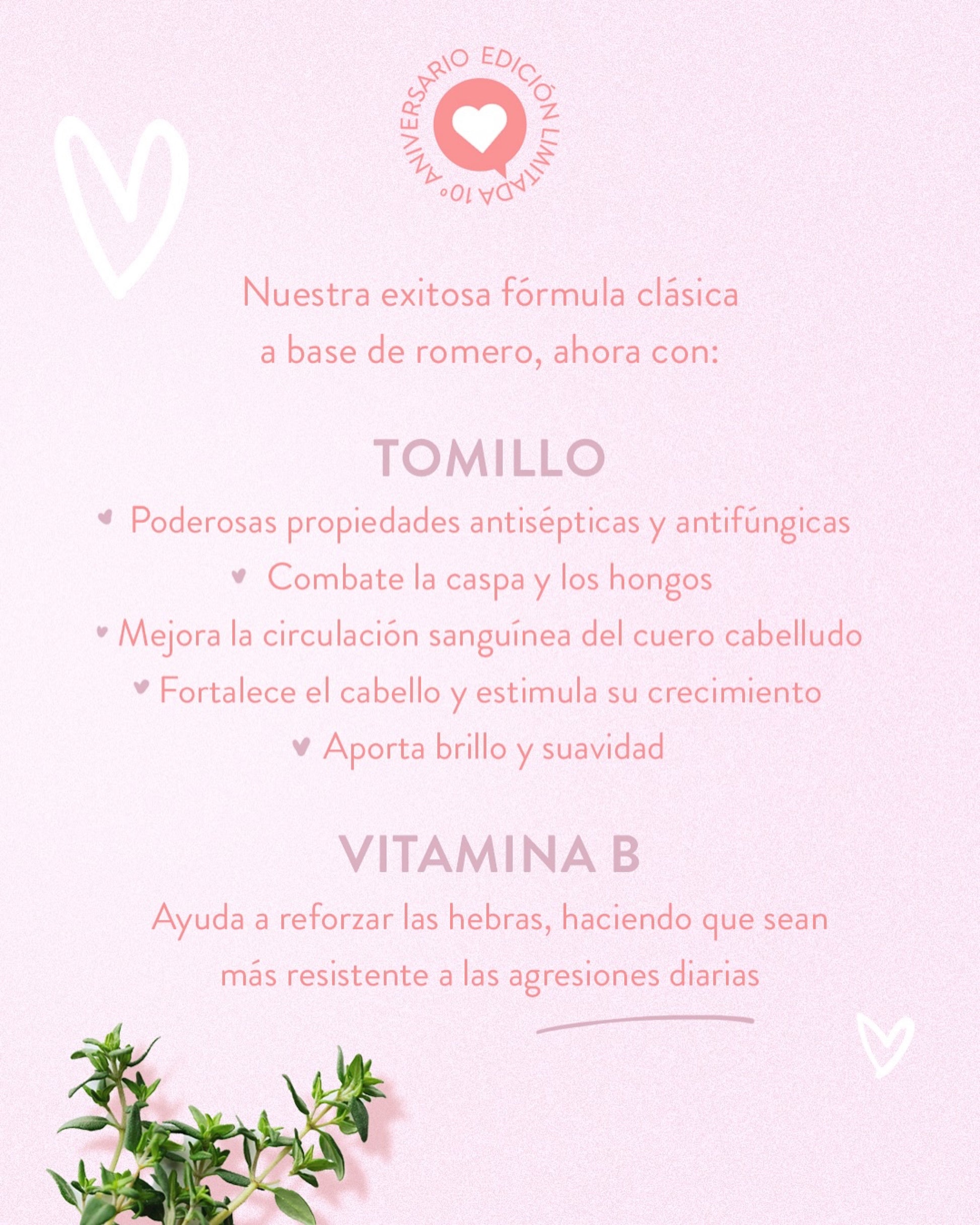 Celebramos contigo nuestro 10° Aniversario con esta EDICIÓN LIMITADA de nuestro producto más icónico: Nuestro Gotero de Crecimiento 4oz, ahora con Tomillo y Vitamina B.