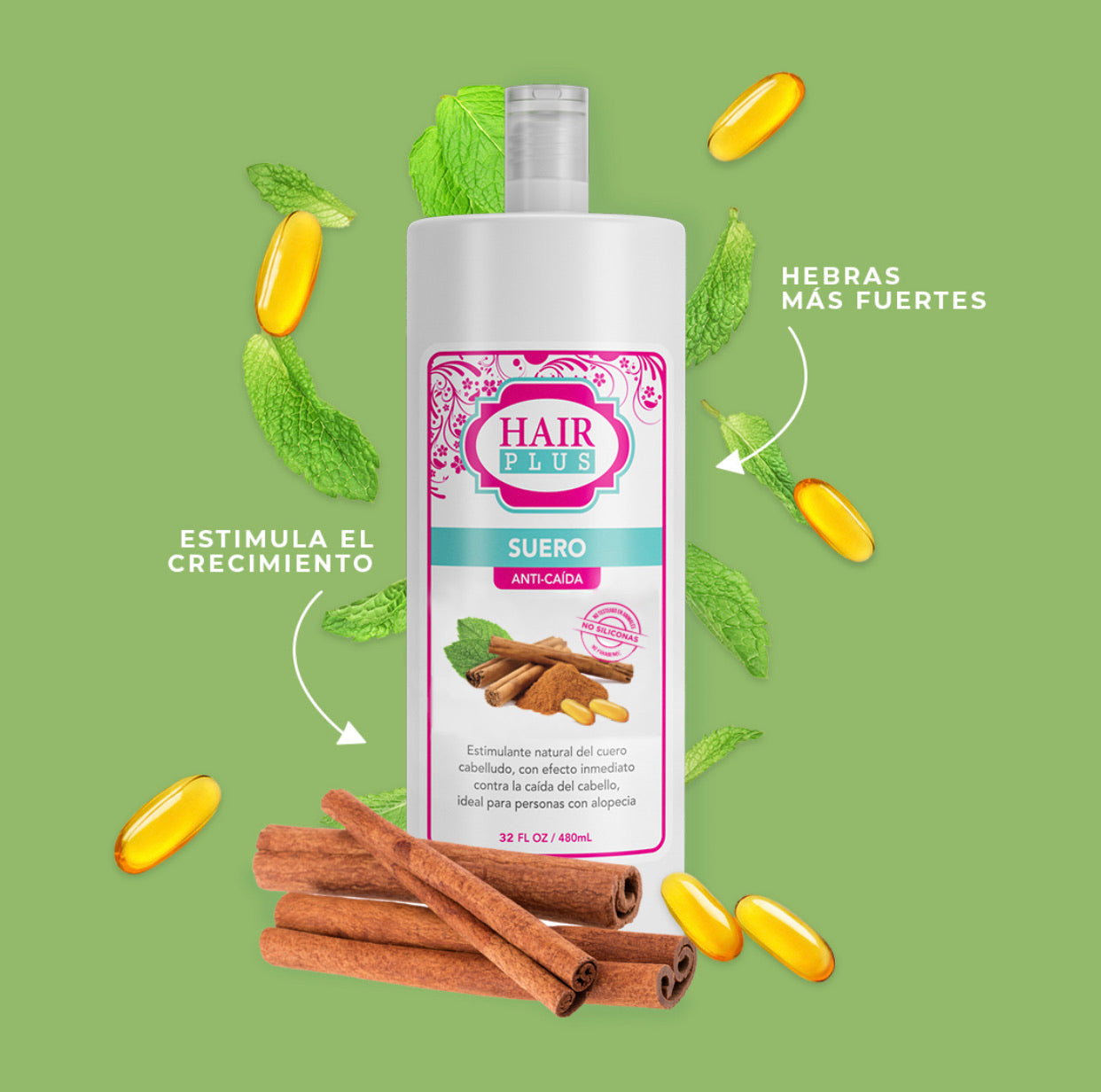 SUERO CONTROL CAIDA Y CRECIMIENTO: Es un estimulante del crecimiento, creado a base de canela, Biotina, menta y vitaminas A, B, B12, C, D, E.